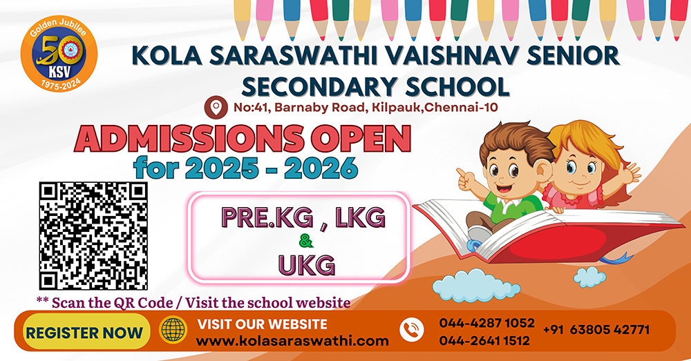 Swami Vivekanada, the patriot monk of India had rightly said, "Education is the manifestation of perfection already existing in man". Rightly then, the Kola Saraswathi Vaishnav Senior Secondary School, imparts knowledge for the holistic development of its pupils. The school teaches its student community to be proactive, put first things first, think win win and synergize all their potencies to mould themselves into future citizens of India.
