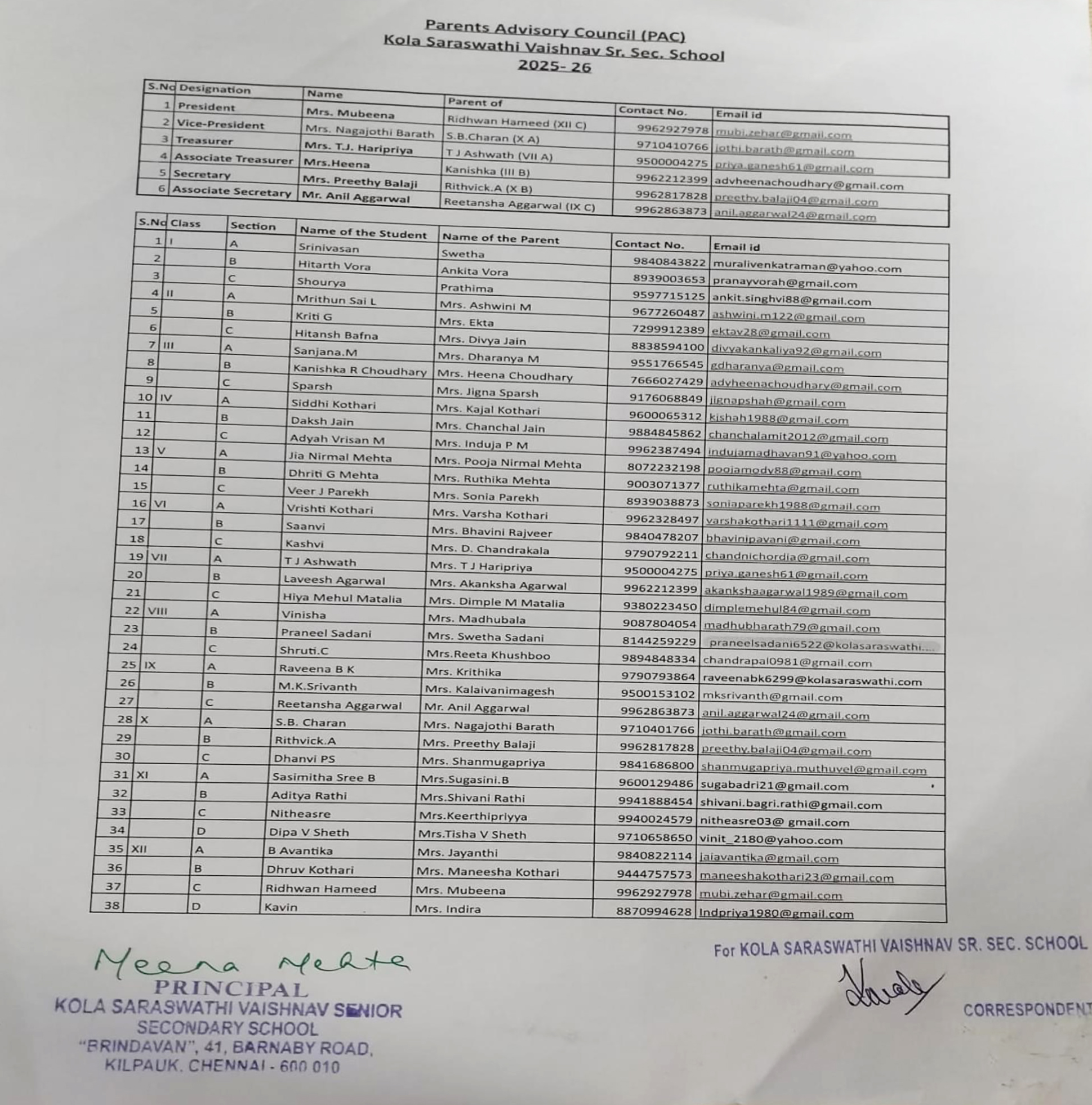 LIST OF PARENTS TEACHERS ASSOCIATION (PTA) MEMBERS